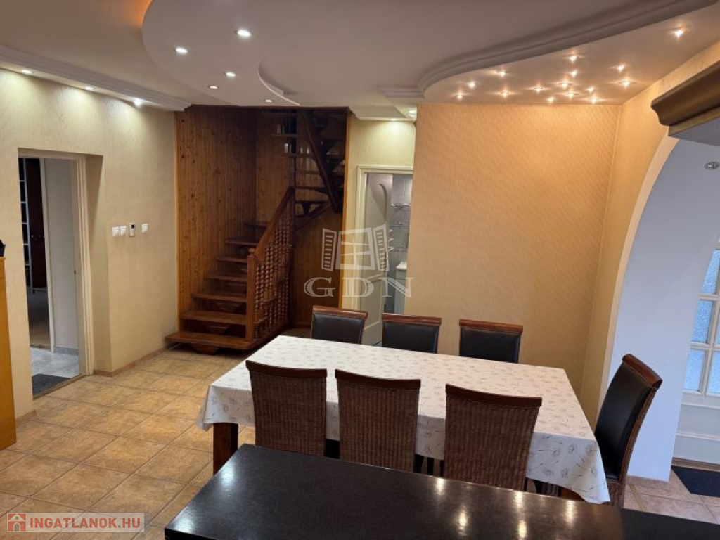 A ház 3 szintes ,260 nm alapterülettel rendelkezik, melyből 160 nm a lakóterület és összesen 7 szobával büszkélkedhet.
