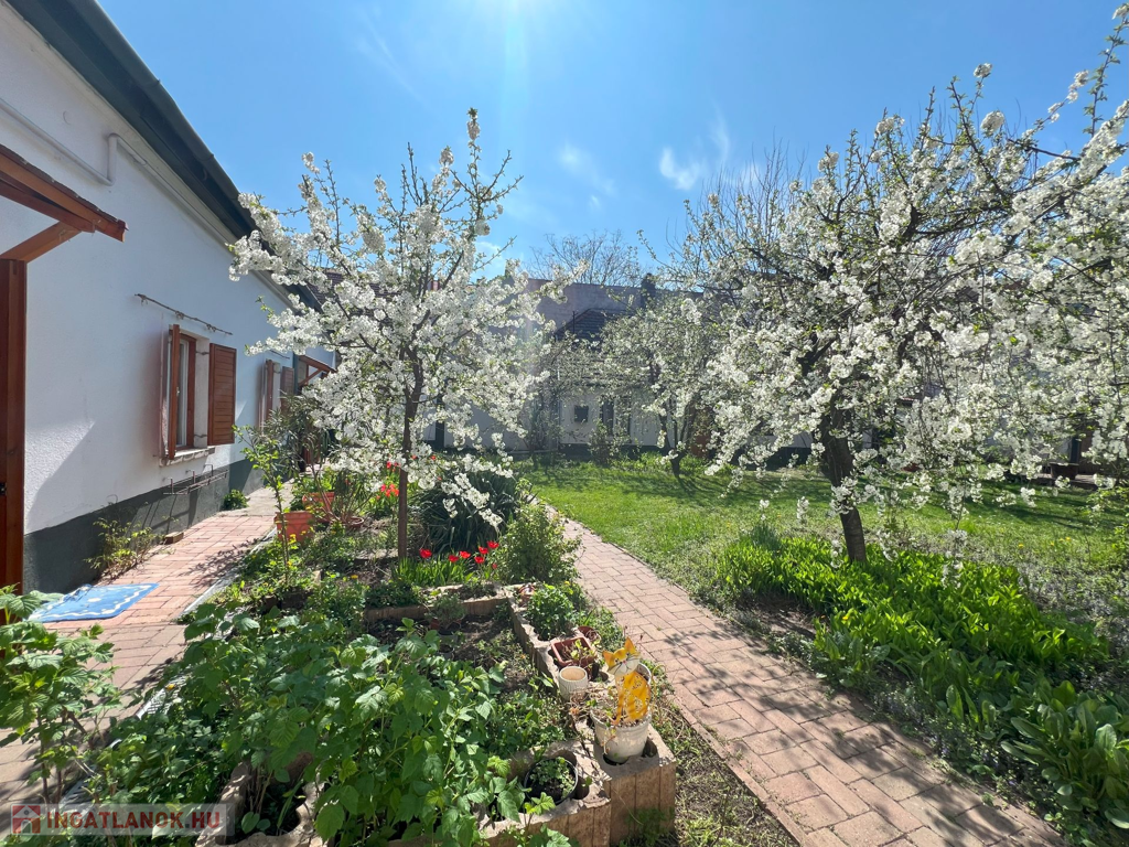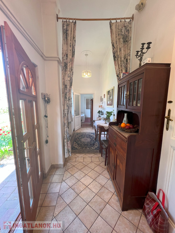 Az ingatlan jellemzői: A 90 m²-es első lakrészt néhány éve teljesen felújították, miközben megőrizték a klasszikus polgári stílusát. A felújítás során új tetőt és hőszigetelt fa nyílászárókat kapott. Külső és belső falait szigetelték fugával benyomott lemezzel. Emellett megújultak a víz- és elektromos rendszerek, valamint a fürdőszobák és a konyhák is modernizálódtak. Az épület tágas előszobába vezet, ahol egy külön WC is található. Innen nyílik az étkező, egy jól felszerelt konyha, a fürdőszoba, a nappali, és egy kényelmes hálószoba.