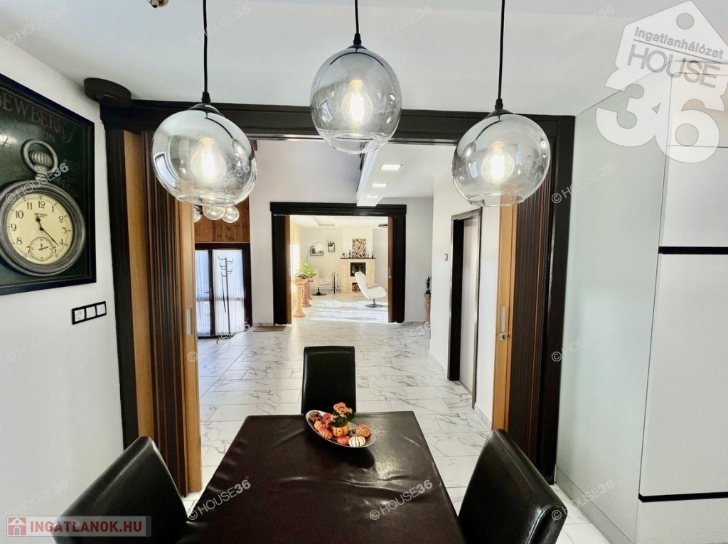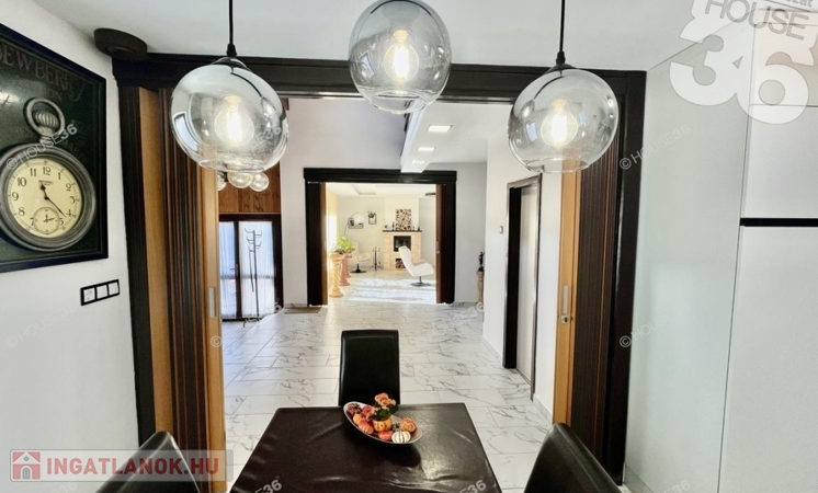Kecskemét belvárosában a MALOM Bevásárlóközponttól 5 percre, csendes utcában 384 m2-es telken, 220 m2 lakóterületű, alatta 70 m2-es szuterénnel, 5 szobás egyedi tervezésű, exkluzív családi ház eladó!