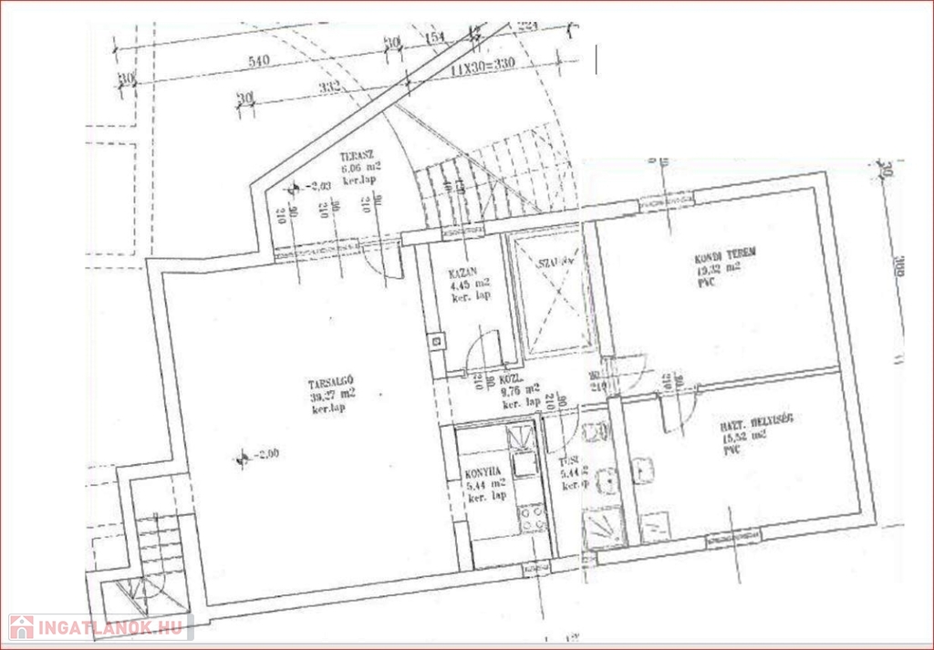 - Földszint 170 nm, étkező, konyha, fürdő, WC padlófűtésű, szobák