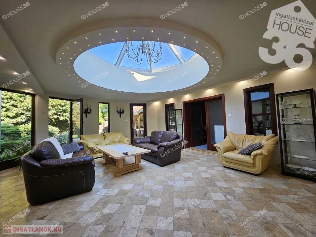 Kecskemét egyik legjobb utcájában, a Vacsiközben, 1166 m2-es dupla telken, kb.300 m2-es, tetőtér beépítéses, 2 nappali + 5 szoba + 2 fürdőszobás, igényesen berendezett és nívós anyagokból épült (mészkő, extra szigetelés), minden igényt-és extrát kielégítő luxus családi ház eladó!
