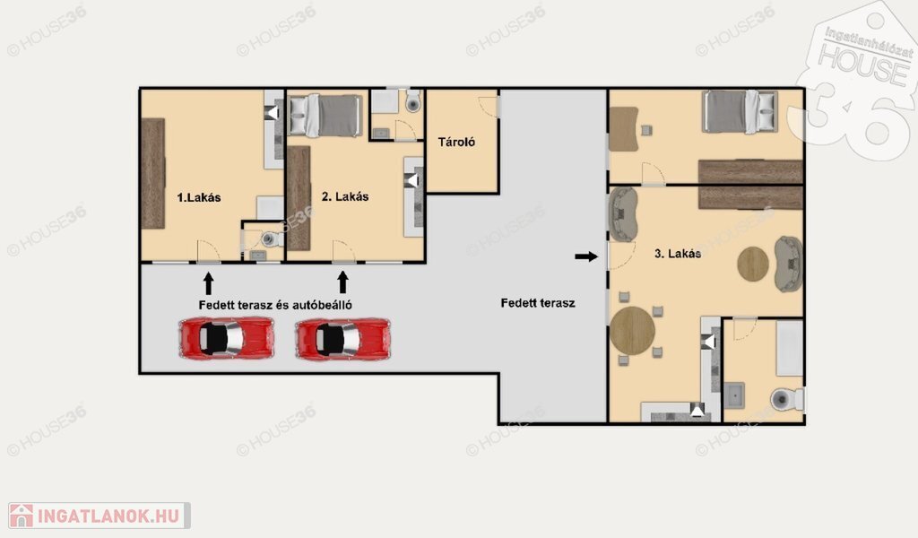 3 külön lakrész kialakítva: