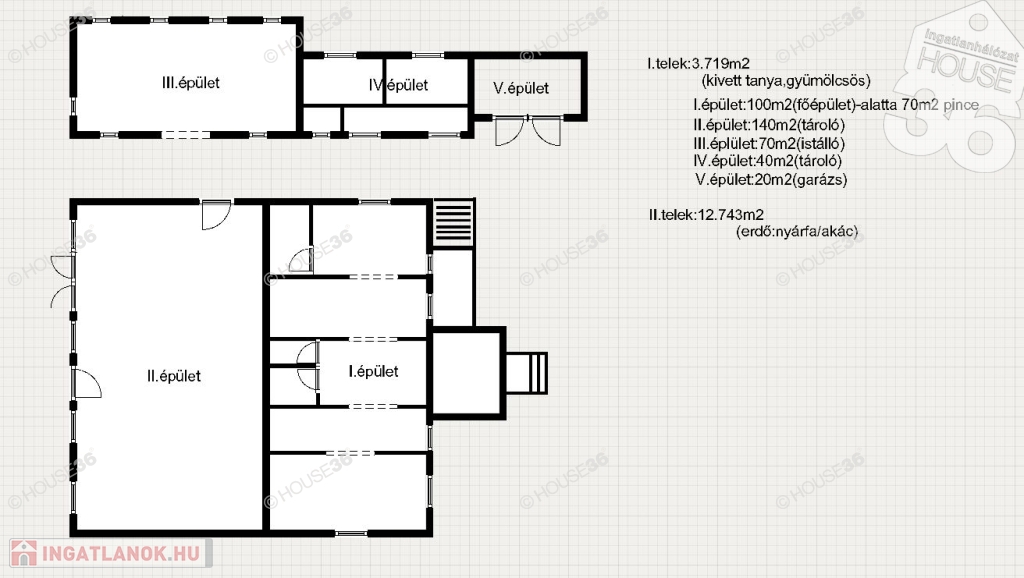 -Melléképületek:-140 m2 :takarmány tároló