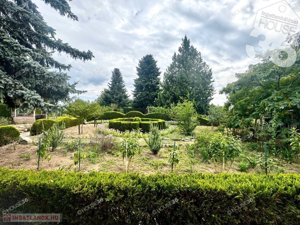 1961 m²-es, gondozott telek, gyönyörű örökzöldekkel