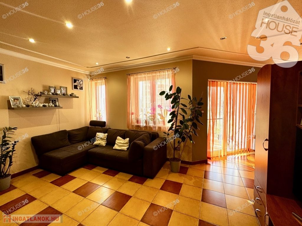 Extrák: 2 terasz (3 m2 és 12 m2), garázs elektromos kapuval, fűthető + udvari beálló