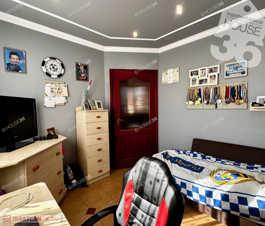 Extrák: 2 terasz (3 m2 és 12 m2), garázs elektromos kapuval, fűthető + udvari beálló