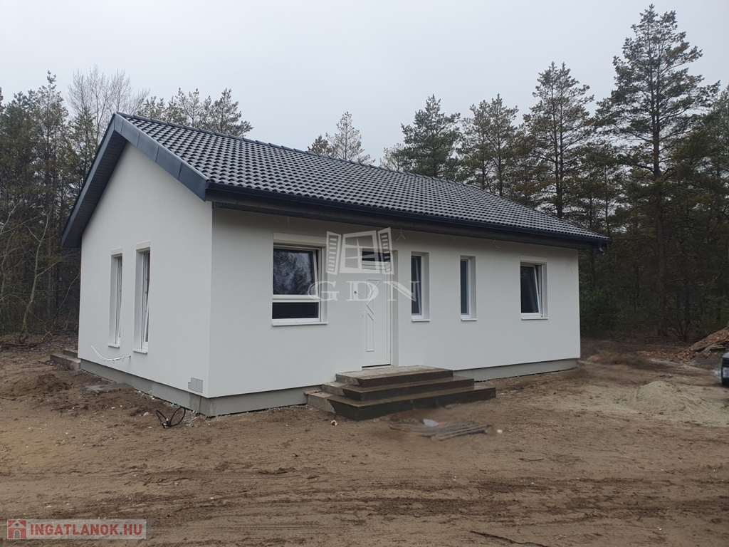 Kecskemét Felsőszéktó területén, új építésű, könnyűszerkezetes, 81 nm, amerikai konyhás, nappali + 1 szobás, klímás családi ház, fedett gépkocsibeállóval eladó. Ideális választás idősebb korosztálynak, vagy fiataloknak, akik nem szeretnének nagy kertet gondozni. Kivitelezésben szerződött partnerünk a mai kornak és igényeknek megfelelő, energia hatékony építő anyagokkal építi fel, vállalt határidőre otthonát. A fotók referencia munkáról készültek.