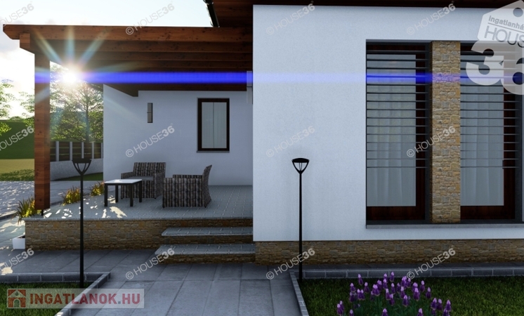 Nappali + 2 szoba, fürdő, és carportot is tartalmaz, nettó 90 m2.