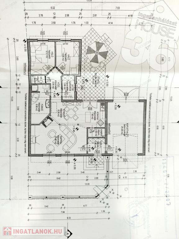 -nappali + 3 szoba