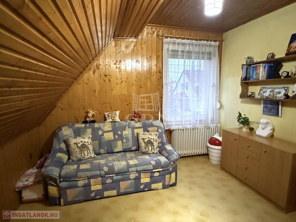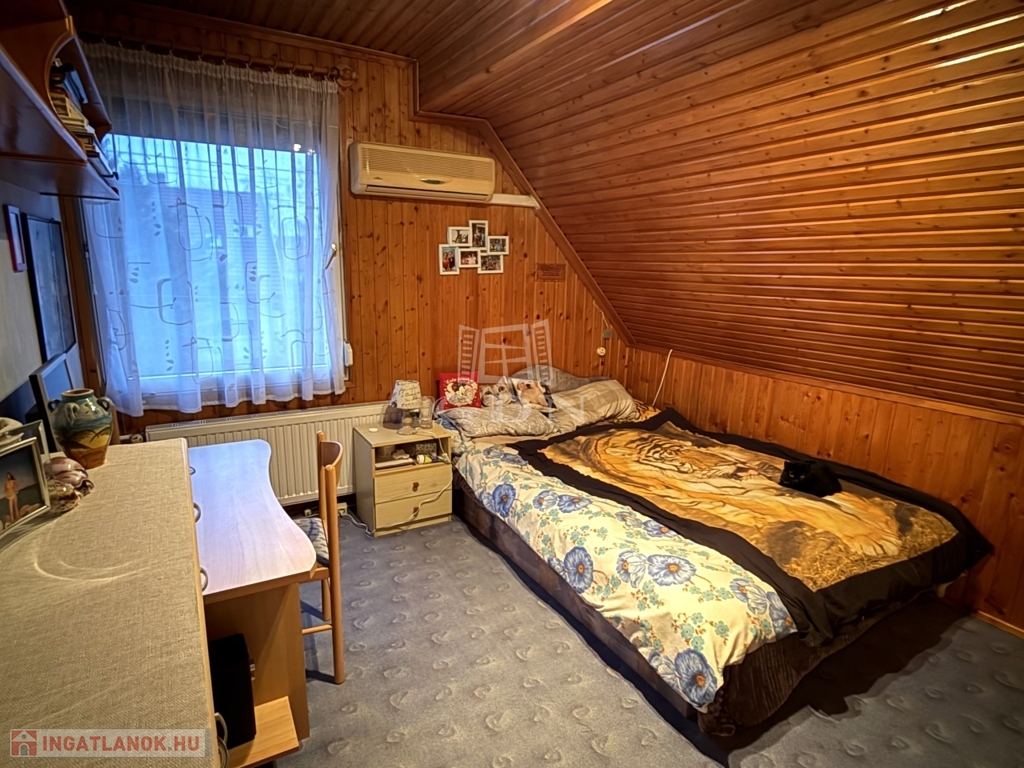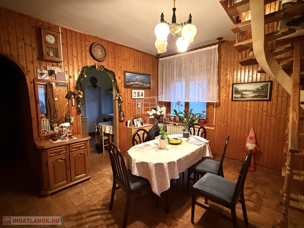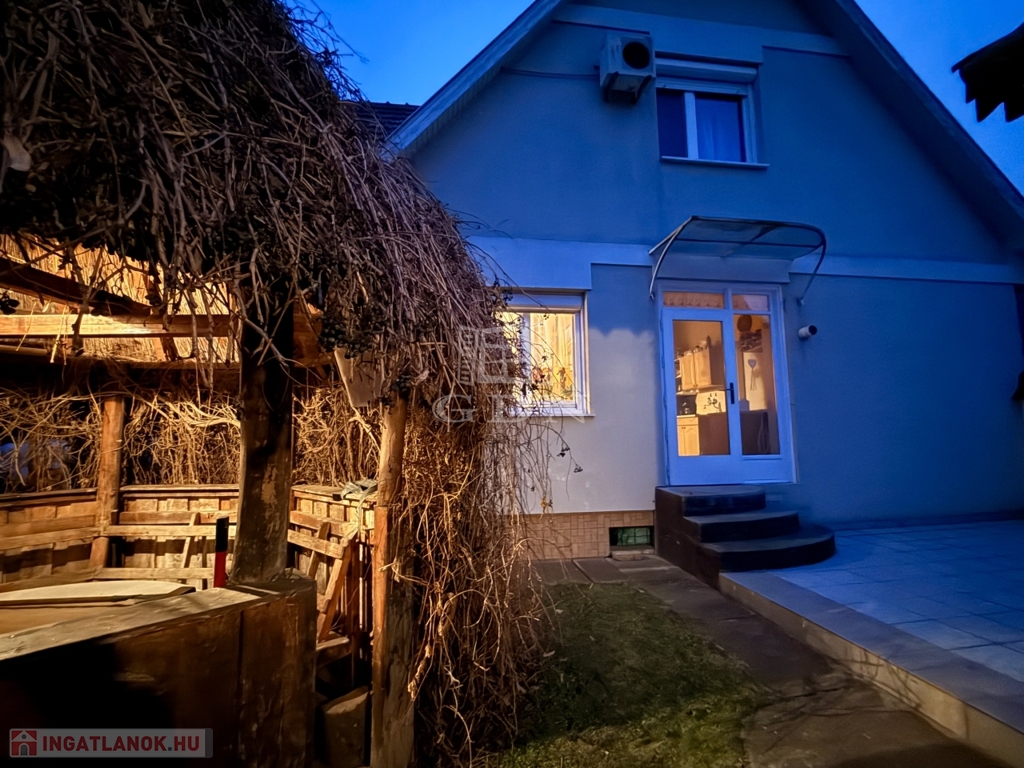 Kecskemét, Kósafalu kertvárosi részben 912 nm telken, 2 szintes nettó 110 nm családi ház eladó. A földszinten 33 nm nappali, mely igény szerint 2 szobává alakítható, előszoba+étkező, konyha, kamra, fürdőszoba, wc kapott helyet, az emeleten 3 szoba, fürdőszoba lett kialakítva. A ház 1990-ben tégla falazattal épült, 8 cm szigeteléssel, alápincézett. Az ingatlanhoz 20 nm terasz kapcsolódik. A melléképület 80 nm, melyből 22 nm egy külön lakrész, konyhával, fürdőszobával. A további rész 3 autó tárolására alkalmas garázs, tároló. Az ingatlan tehermentes, igény esetén akár teljes bútorzattal is eladó, azonnali birtokbaadással. A környezet csendes, biztonságos, családiházas övezet, kiváló megközelítéssel, közlekedéssel, közelben a Mercedes-Benz, de a városközpont is néhány perc autóval. Ideális választás két generáció nyugalmas együttélésére, fiatal, gyermekes családoknak, de az idősebb korosztály is megtalálja kényelmes életterét.