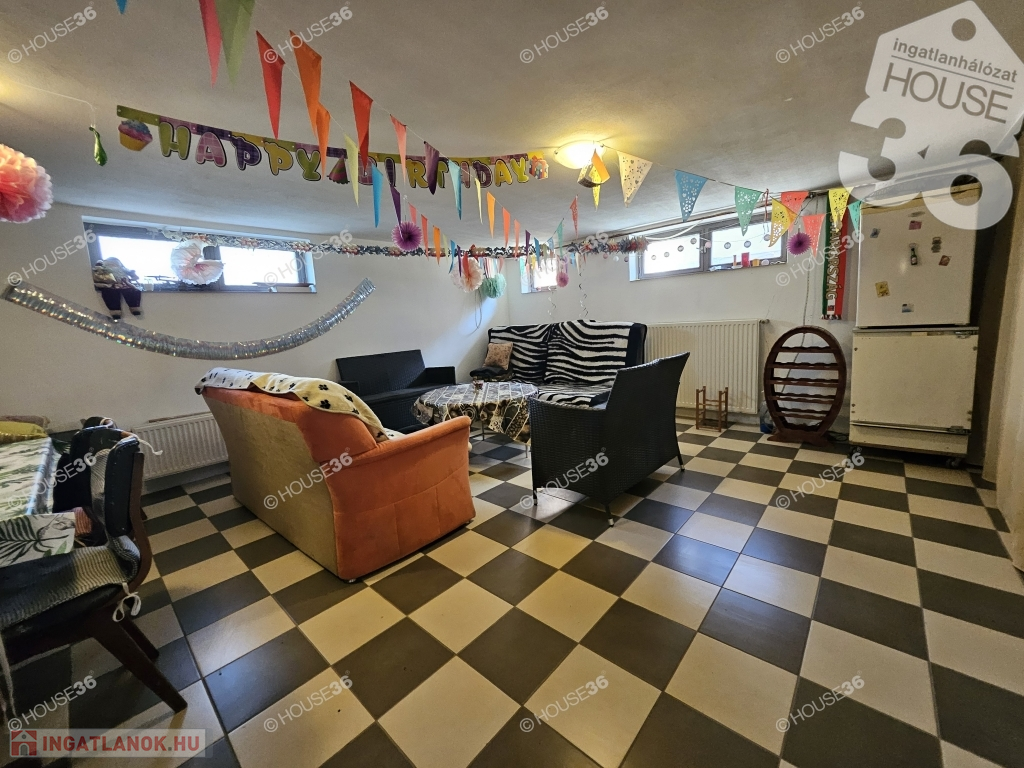 -pinceszinten mosókonyha, kazánház, tárolók, buli szoba