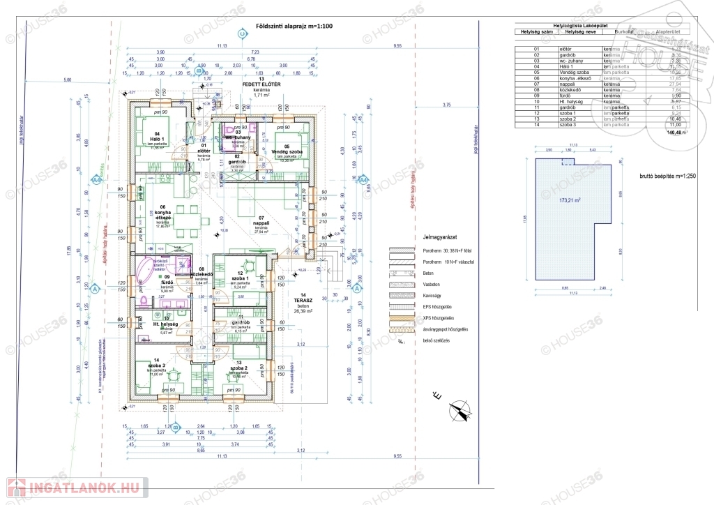 - nettó 140,48 m2 lakóház, 5 szoba+nappali+gardrób+2 fürdőszoba