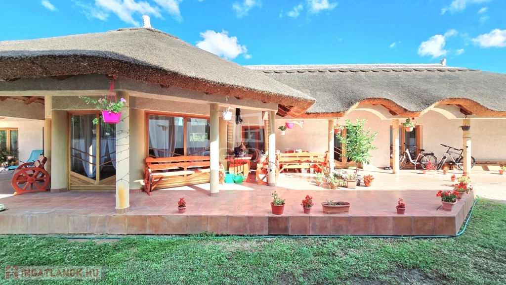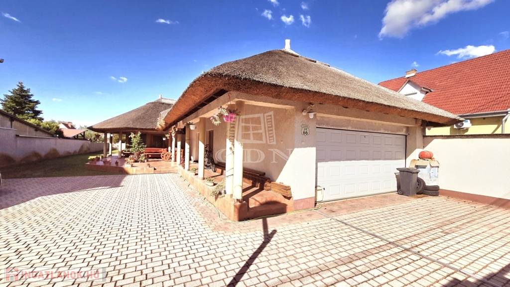 Kecskemét-Hetényegyháza kedvelt családi övezetében eladó egy 1993 szeptemberében elkészült, hagyományos anyagokkal, Prémium minőségben épült nádfedeles villa.