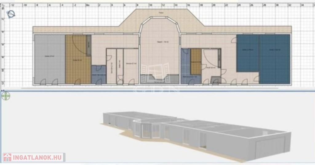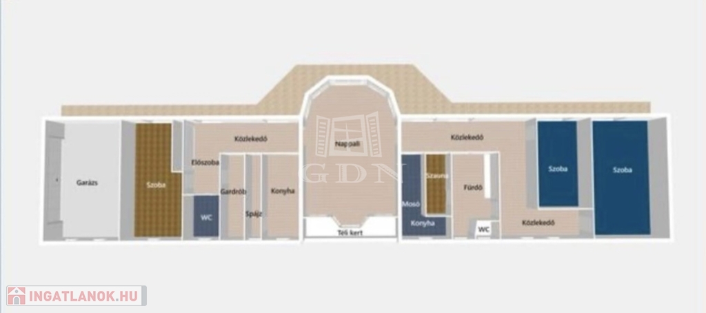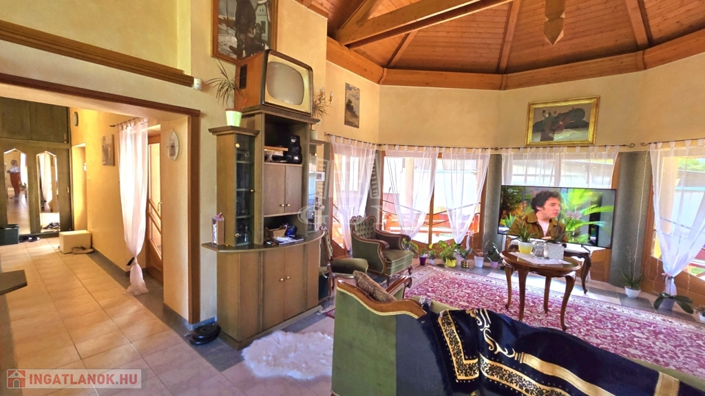 Az aszfaltozott utcában található 1153 nm összközműves területre a tulajdonos egy bruttó 350 nm házat tervezett, 3 szobával, konyhával, két fürdőszobával, szaunával, külön WC-vel és gardróbbal. Hatalmas, 50 nm nappalival, ahonnan panorámás kilátás nyílik az egész udvarra és hátul a télikertre.