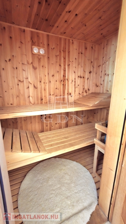 Egy hosszú nap után egy négyszemélyes beépített szauna nyújt tökéletes kikapcsolódást, mely a fürdőn keresztül érhető el.