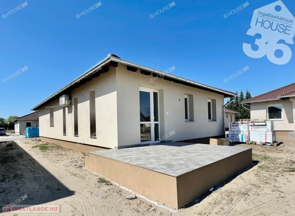 Kecskemét Kadafalván fiatal építésű utcában eladó egy 420m2-es telken lévő 4 szobás új építésű 92m2-es családi ház, 16,5m2-es garázzsal