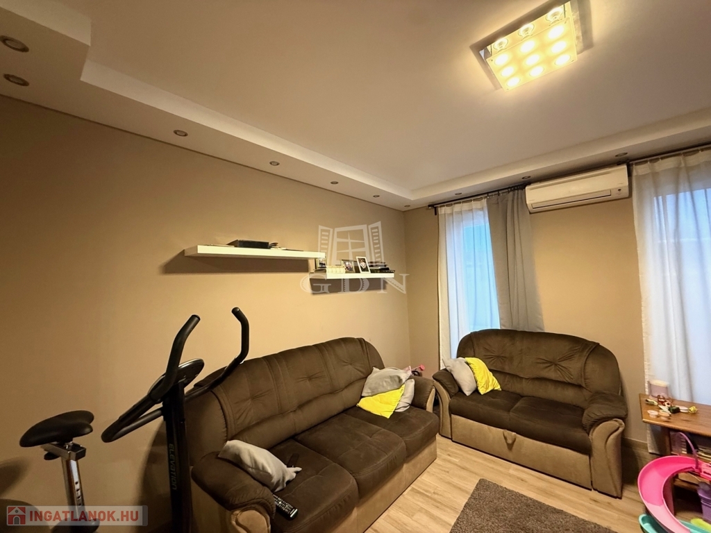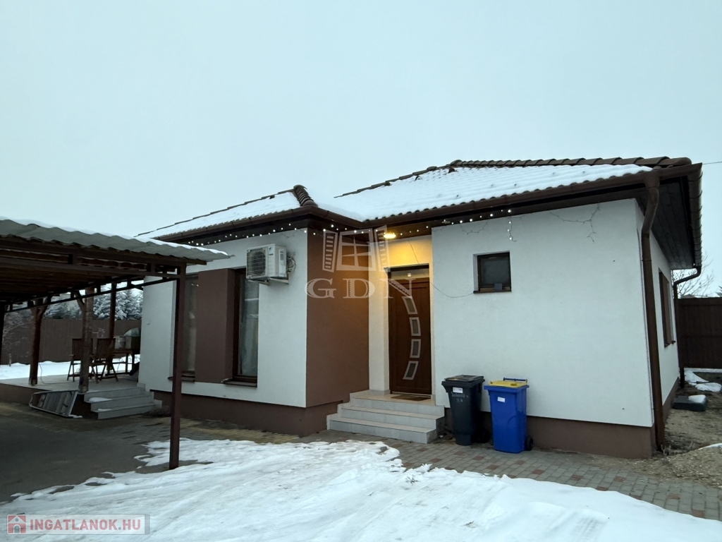 Kecskemét-Kadafalva új építésű családi házas övezetében, aszfaltos utcában 711 nm telken, újszerű, 94 nm lakóterű nappali+3 szobás modern családi ház eladó. Az ingatlan 2018-ban tégla falazattal, 30 cm födém, 15 cm homlokzati szigeteléssel, kiváló esztétikai és műszaki tartalommal épült. Élhető terek, praktikus elosztás, amerikai konyhás nappali, spájz, háztartási helyiség, dupla wc és fürdőszoba, 20 nm fedett terasz teszi még komfortosabbá a lakók életét.