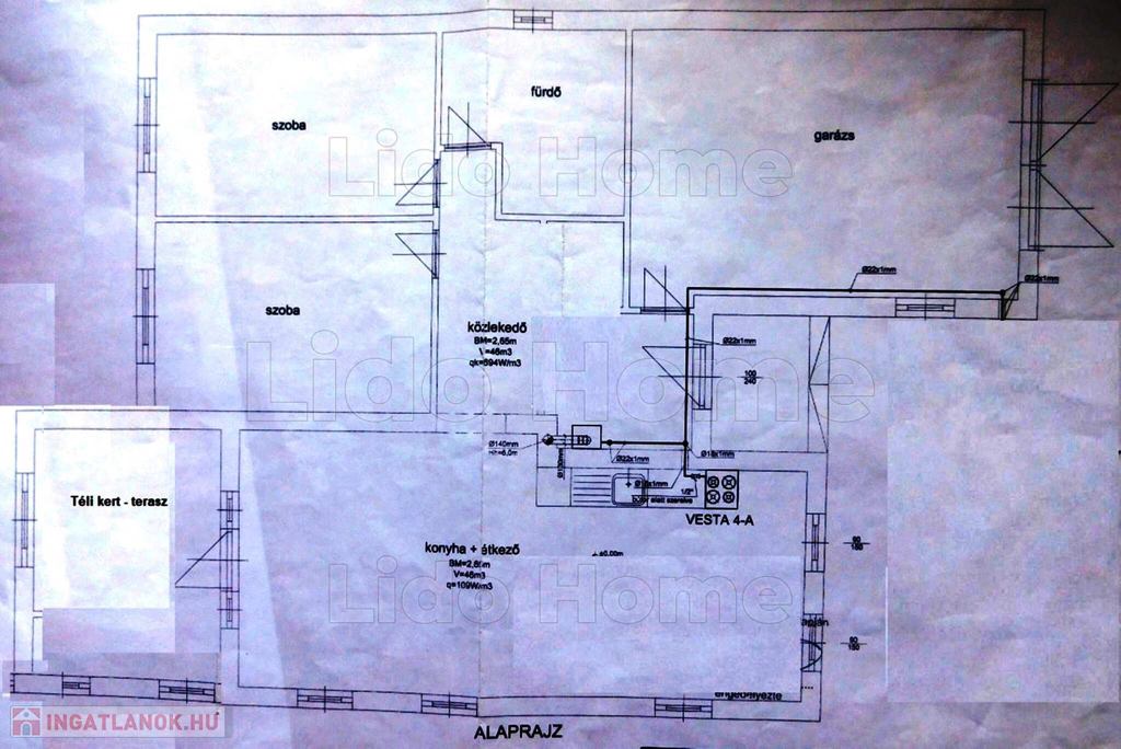 - földszint: előszoba, közlekedő, amerikai konyhás nappali, Fürdőszoba + WC, 2 szoba, téli kert, garázs
