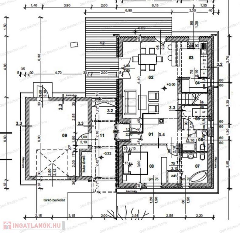 - alapterület: 141,5 nm + 23,35 nm-es terasz + 26,62 nm-es garázs, telek mérete: 725 nm