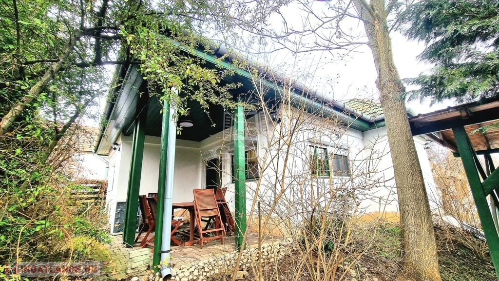 A 800 nm-es gondozott, vadregényes ,intim telken grillező terasz és e fedett kocsibeálló lett kialakítva.