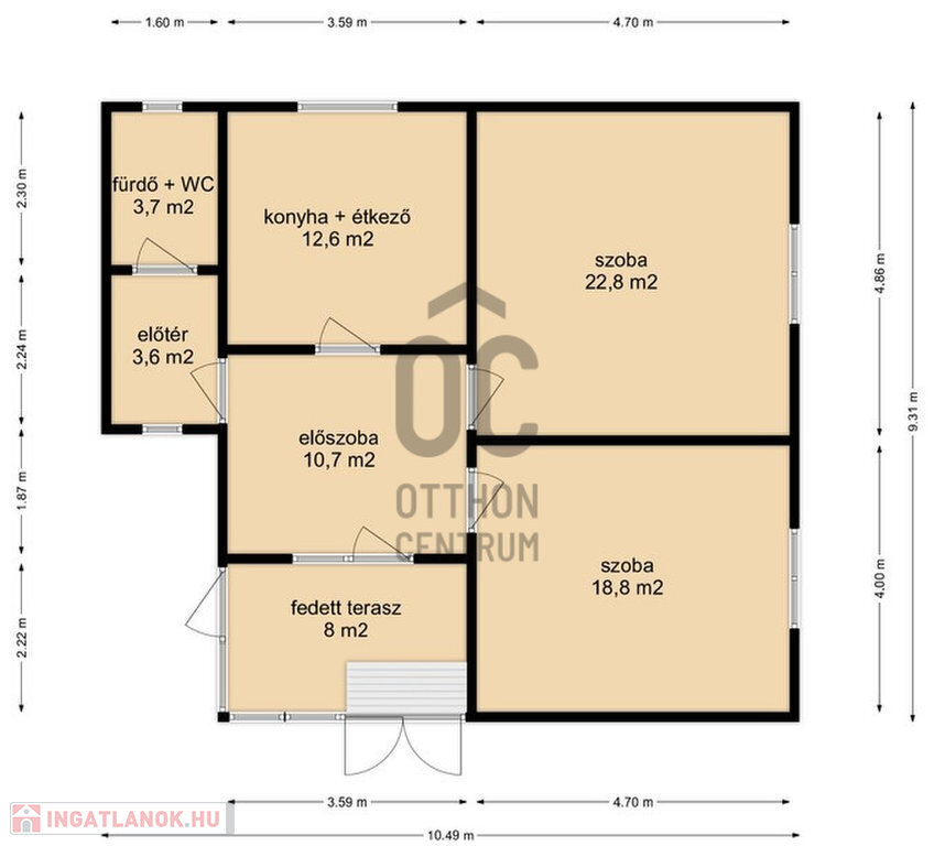 - A nyílászárók a beépített teraszt kivéve műanyag szerkezetűek.