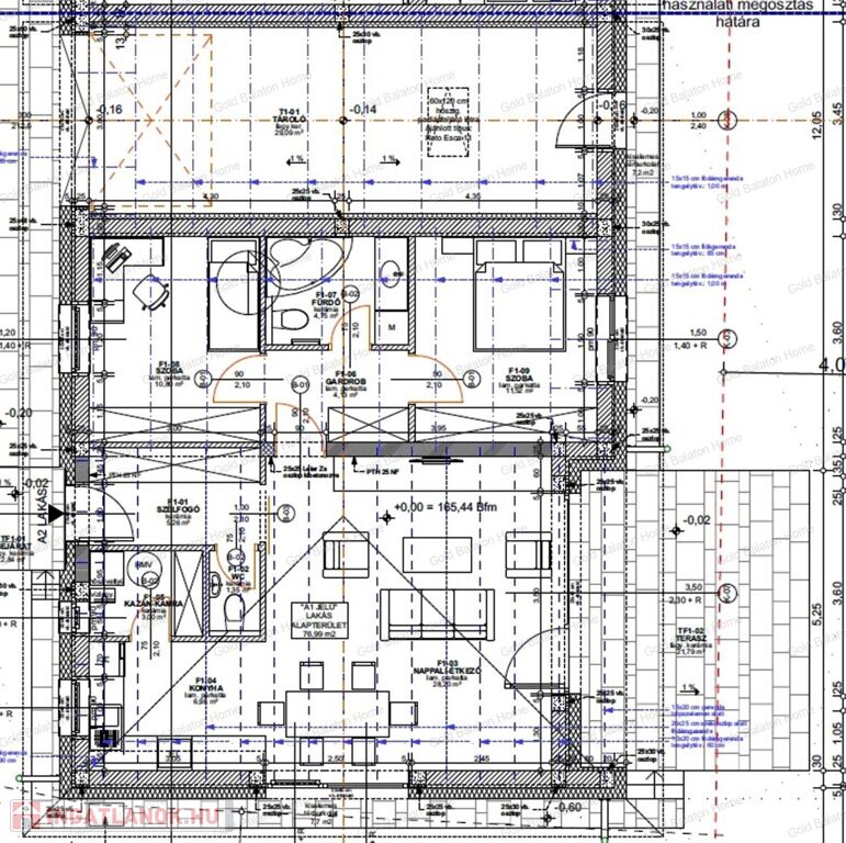 - alapterület: 106 nm, kizárólagos használatú telekrész 530 nm