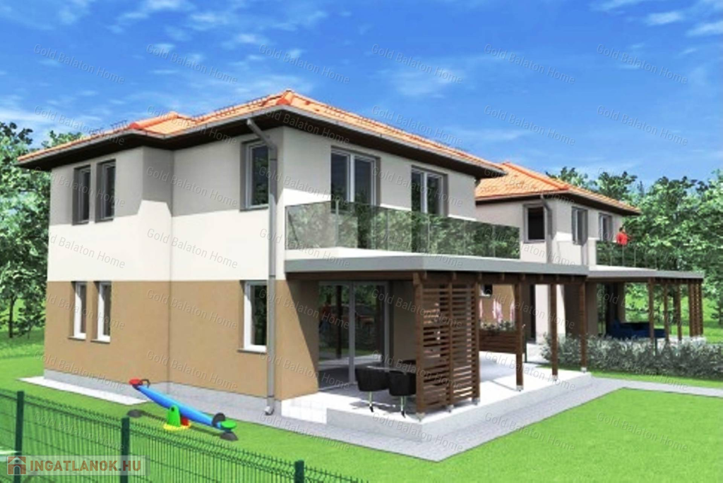 Kétszintes nívós IKERHÁZAK rendezett udvarral, a Hévízi-tótól 3 500 méterre, a Balatontól 4 500 méterre.
