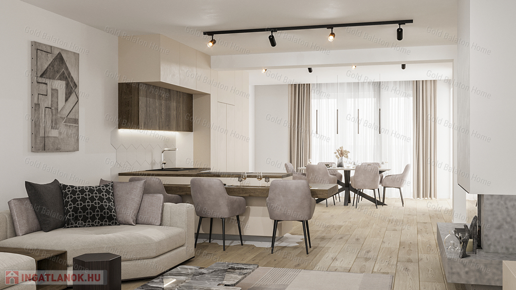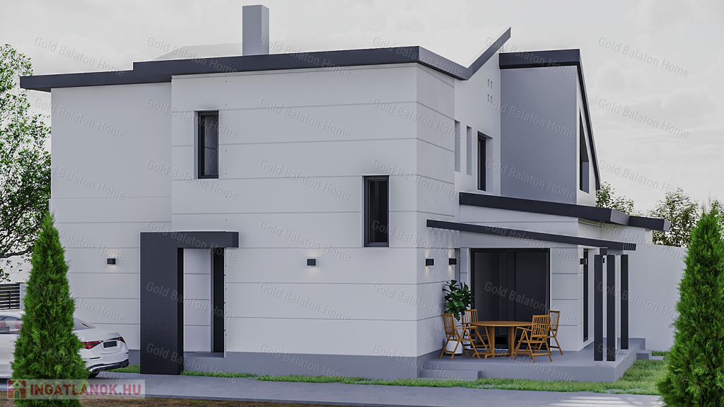 - lakótér 140 m2, teraszok 30m2, saját udvar területe 350 m2