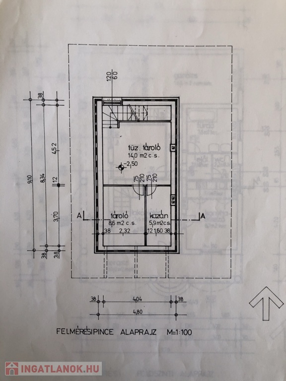 • Pince (42 m²): Tárolóhelyiségek, gépészet.