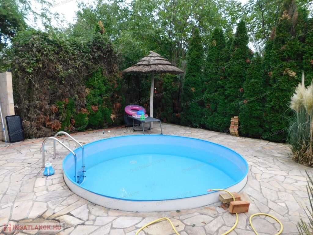 - kerti grillező, kerti medence napkollektoros zuhanyzóval a parkosított udvaron