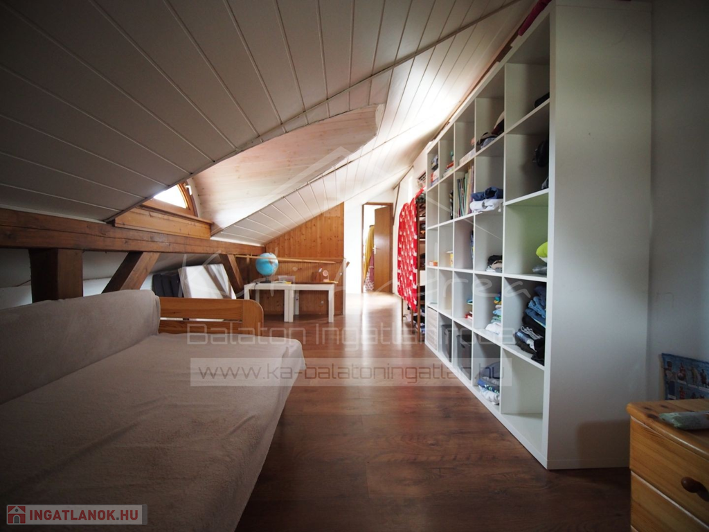 • Az emeleti szint illetve padlástér be lett építve, ablak is lett nyitva. Itt 2 szoba lehetőség van, amit most is használnak. ( 55-60 m2)
