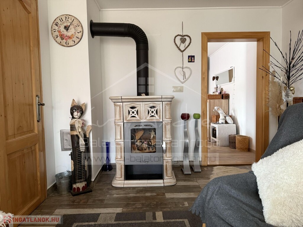 • A nappaliban fatüzelésű kályha biztosítja a meghitt meleget, emellett hűtő-fűtő klíma is rendelkezésre áll.