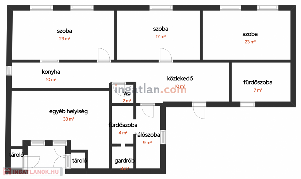 Az ingatlan kiváló elrendezésű, tágas terekkel, minden helyiség külön nyíló.