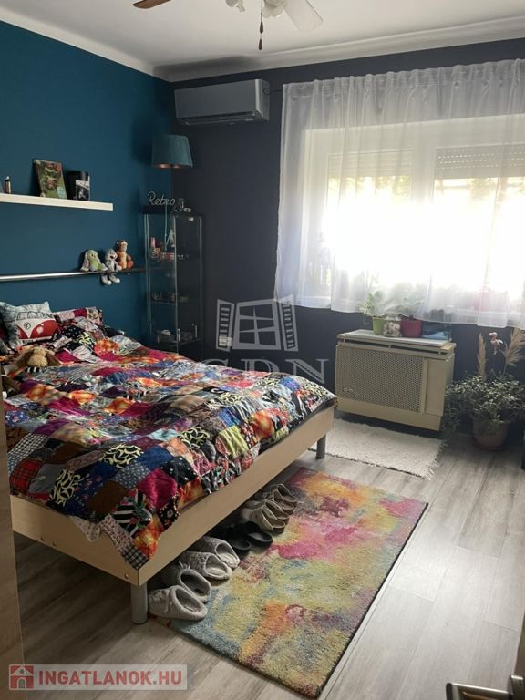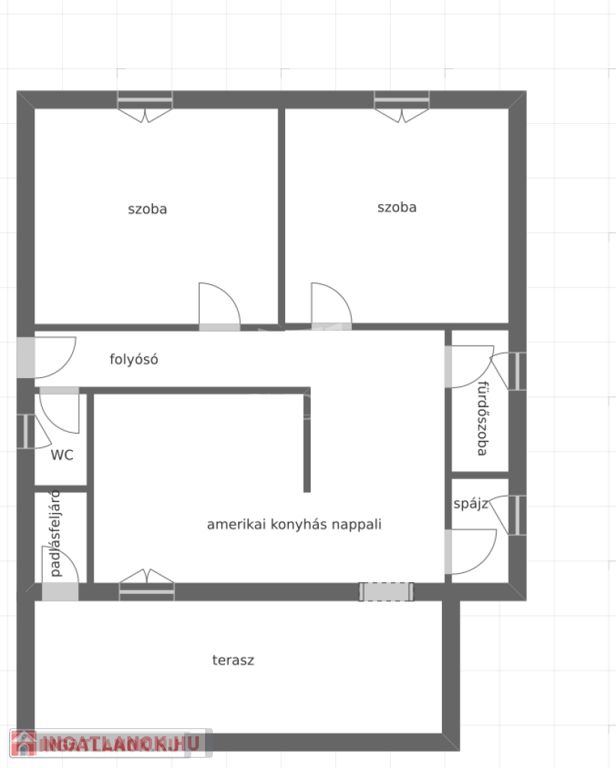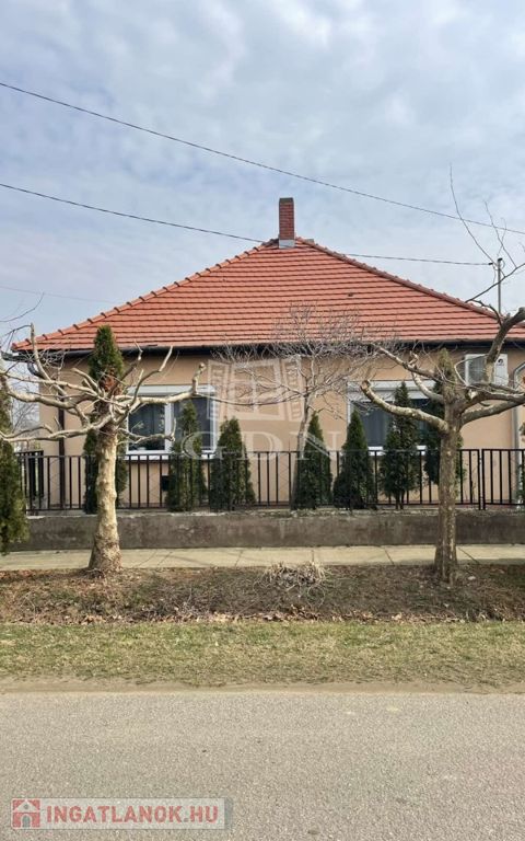 A 2072 m2-es, gondozott, összközműves telken elhelyezkedő 104 m2-es ingatlanban 2 szoba, folyosó, amerikai konyhás nappali, fürdőszoba, különálló illemhely és spájz is található.