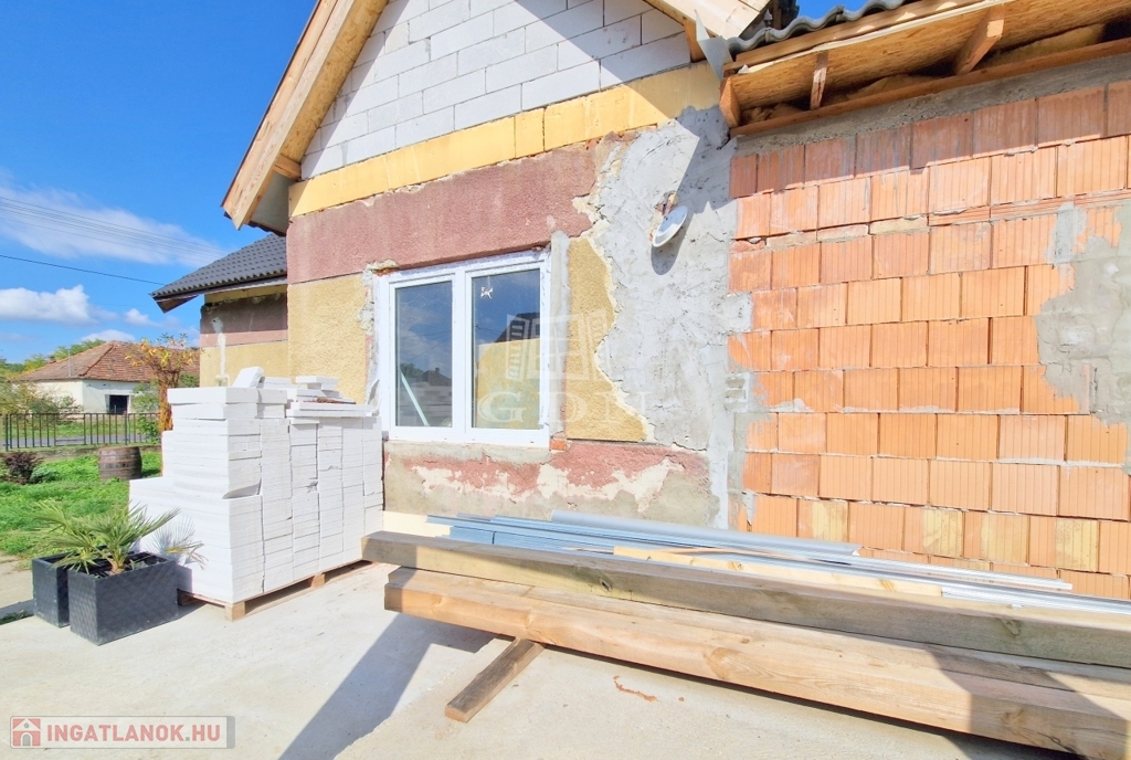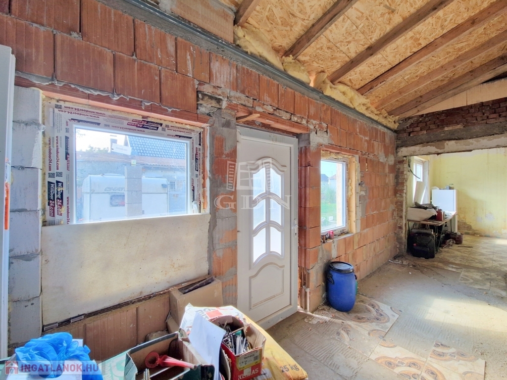 Figyelem, a tulajdonos vállalja a tető befejezését ( a cserepek felrakását ahol még nem valósult meg), illetve a jelenleg homok aljzattal rendelkező szoba lebetonozását is, továbbà minden, a felújításhoz szükséges megmaradt építőanyagot is az ingatlanban hagyja.