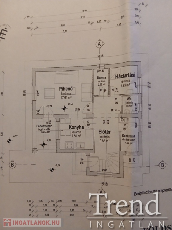 Épület alapterülete: kb. 90 m²