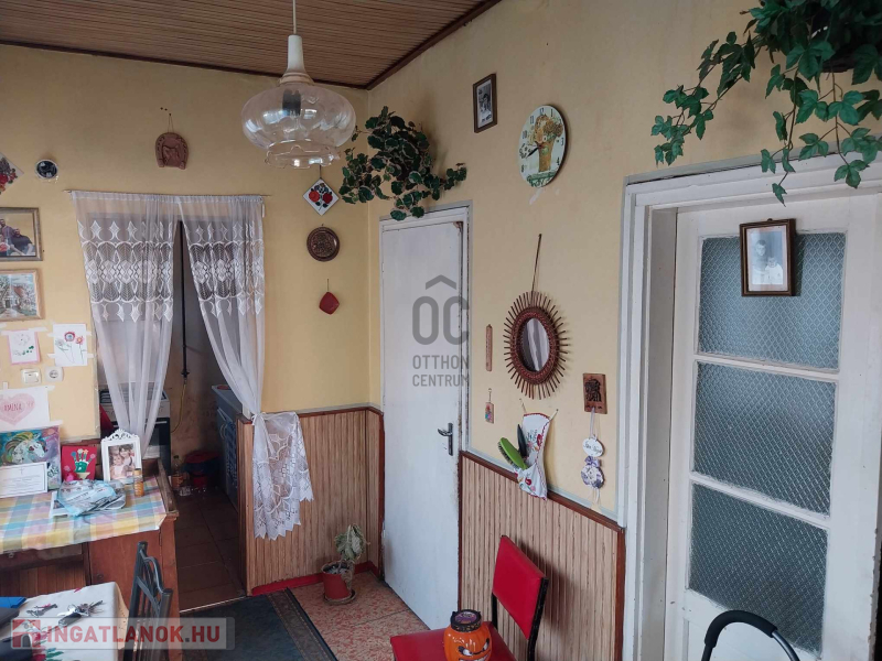 Két normál méretű utcafronti szobával, közlekedővel, tárolóval, fürdőszobával wc-vel, kamrával, konyhával és étkezővel, valamint egy fedett belépővel rendelkezik, valamint a ház mögött garázs és tárolók még.