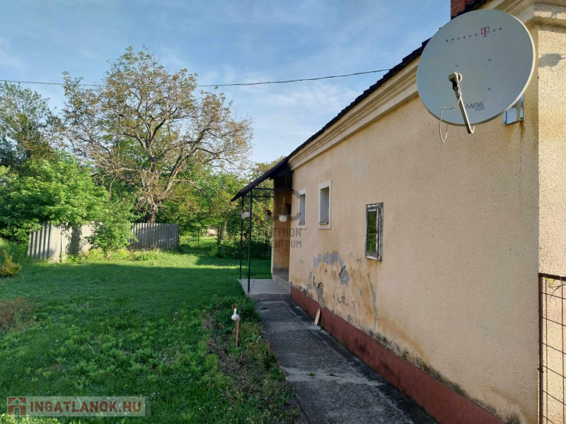A füvesített, elrekesztett kertben gyümölcsfák vannak, de konyhakert is bőven kialakítható.