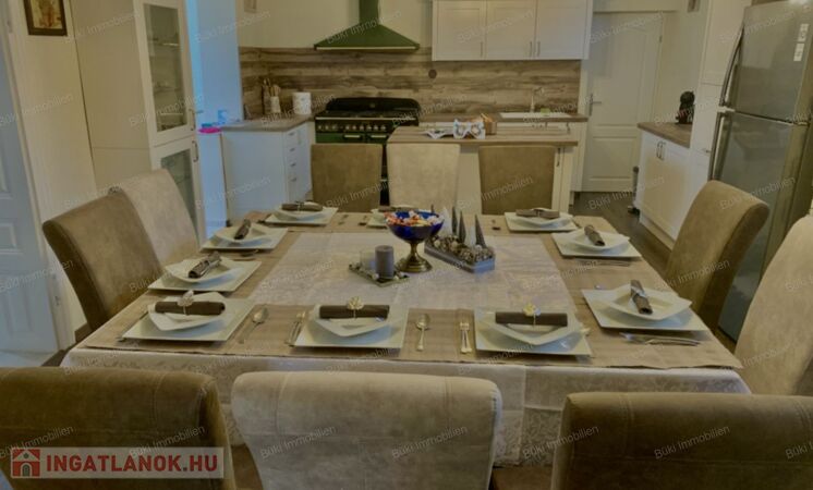 Az ingatlan kertjéből mesés látvány tárul majd az új lakója elé, hiszen szemben egy erdő található. Ez a konyha tágas és inspiráló, ideális hely a főzés és a baráti találkozók számára. A fürdőszobában elhelyezett WC mellett, rendelkezésre áll egy külön illemhelyiség is, így a reggeli készülődés közben nem kell egymásra várni. Az étkező bőséges teret biztosít, ha vendégek érkeznek, mert itt mindenki kényelmesen elfér.