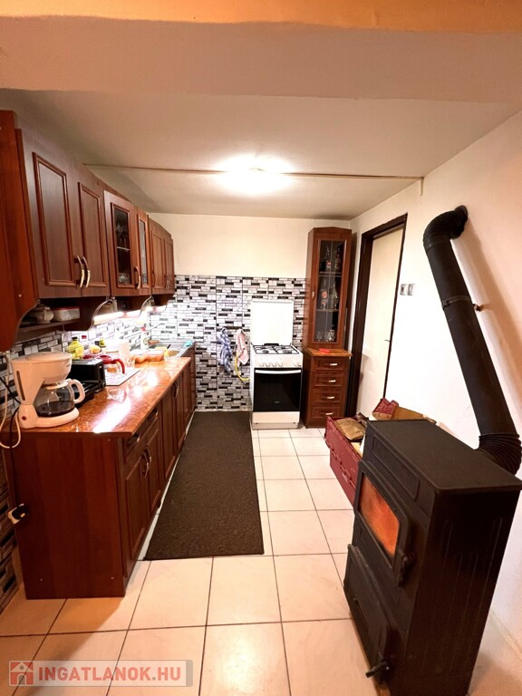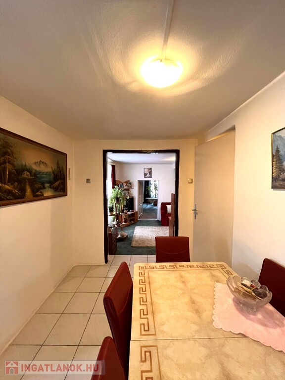 Az ingatlan jellemzői: Ez az eredetileg vályogból épült parasztház az évek során bővítésre került – az újabb rész már téglából készült –, így ma egy jól átgondolt, 115 m²-es otthonná vált. A kialakítás praktikus és élhető: nem egymásból nyíló helyiségek, hanem három külön bejáratú szoba biztosítja a kényelmes életteret.