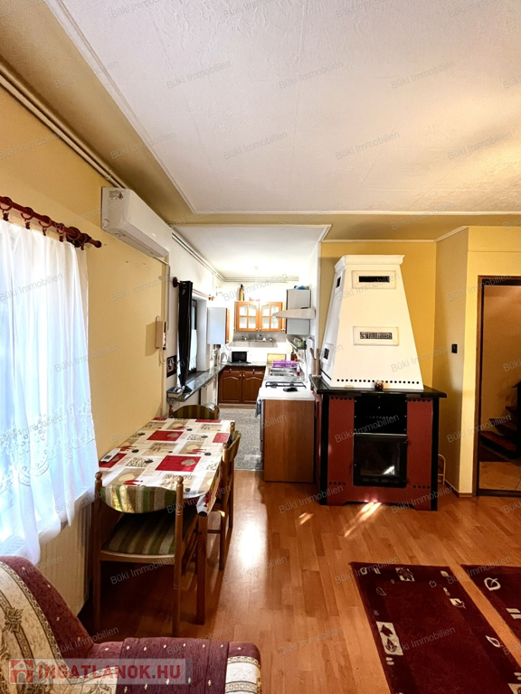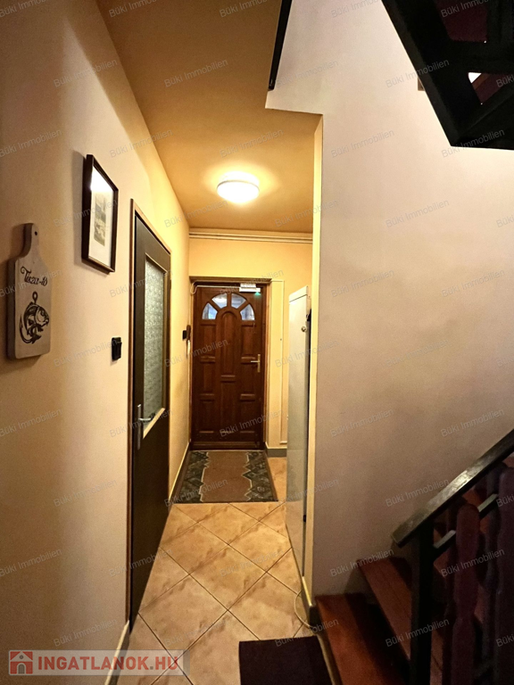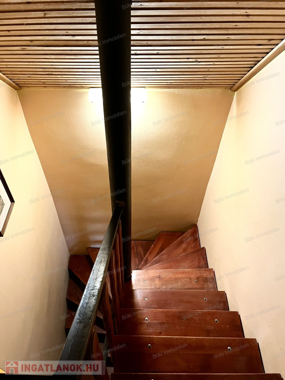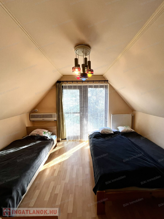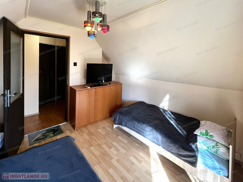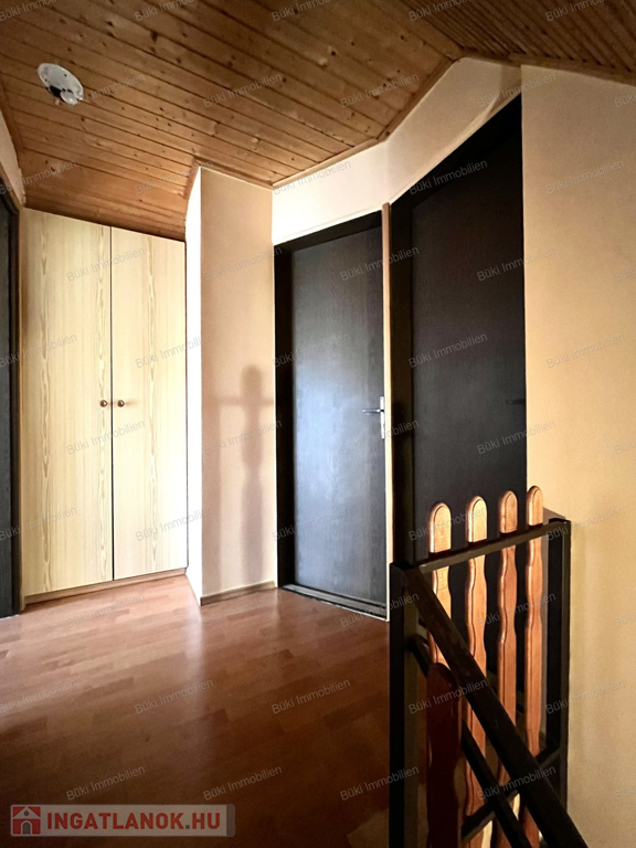 A ház elrendezése ideális családok számára: az alsó szinten tágas, világos nappali-étkező található, ahol a kandalló meghitt hangulata fogadja a belépőt. Itt kapott helyet a praktikus konyha, egy zuhanyzós fürdőszoba illemhelyiséggel, valamint egy hangulatos hálószoba. A belső lépcsőn az emeletre jutunk, ahol két további szoba és egy második fürdőszoba szolgálja a lakók kényelmét. A nagyobb szobából nyíló erkélyről reggelenként a madarak éneke kíséri a kávézást.