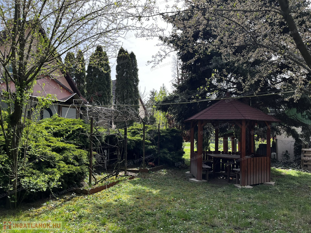 A 560 m²-es, parkosított kert valódi ékköve az ingatlannak: gondozott, örökzöld növényzettel, filagóriával, szőlőlugassal, kemencével, kerti zuhannyal és árnyékolt, szúnyoghálóval ellátott 20 m²-es fedett terasszal, amely tökéletes helyszíne a családi, baráti összejöveteleknek. A kert hátsó részében egy nagyobb, hajó tárolására is alkalmas melléképület, valamint egy kisebb tároló is található, így tárolási lehetőségből sem lesz hiány. Emellett egy szép, száraz pince is tartozik az ingatlanhoz.