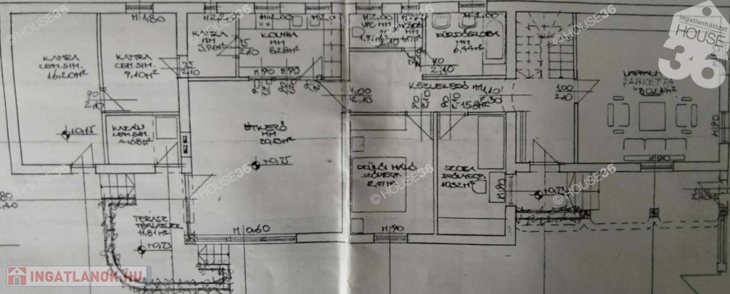 - 175 m2-es lakóterület, 5 szoba, két fürdőszoba (lakótér bővítési lehetőség adott).