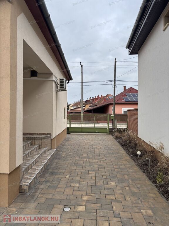 A környék hangulata kifejezetten kellemes: rendezett, tiszta utcák, barátságos környezet, ahol könnyű otthon érezni magunkat. A kert hátsó része igazi kis zöld menedék: rengeteg szőlő, alma- és barackfa terem itt, így jó időben szó szerint csak ki kell lépni a kertbe, és saját gyümölcsöséből válogathat friss finomságokat – ez az a plusz, amit egy városi lakás sosem fog megadni.
