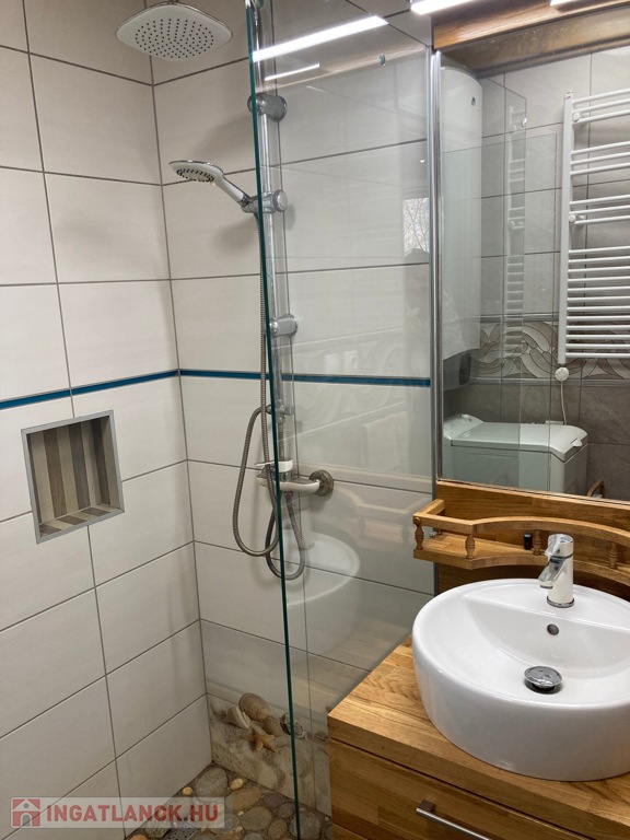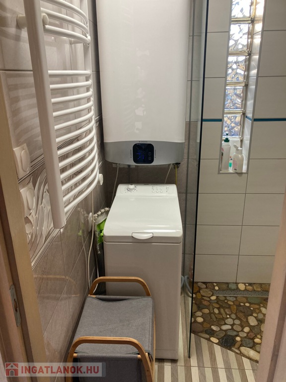 - Fürdőszoba: zuhanykabin, kézmosó, mosógép, Ariston bojler