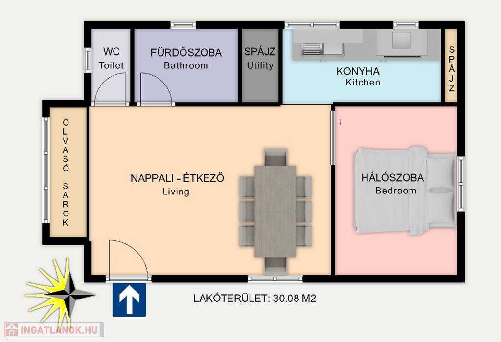 2019-2020 -ban épült, modern, minőségi anyagokból készült, minden igényt kielégítő otthont mely egy hálószobát, nappali + étkezőt, beépített bútorral és gépészettel felszerelt konyhát, zuhanykabinos fürdőszobát és egy külön wc-t rejt magában.