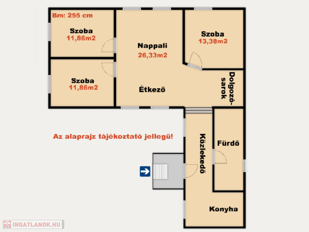 A házban három kényelmes szoba, tágas nappali-étkező, konyha, fürdőszoba, praktikus dolgozósarok és közlekedő található. Az épület alatt egy 23 m2-es pince helyezkedik el, amely kiváló tárolási lehetőséget biztosít.