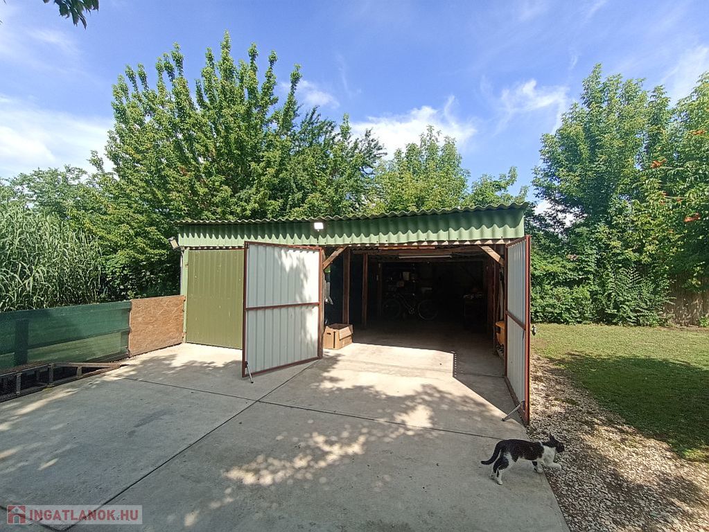 A parkosított udvarban három garázs, elektromos kapu, riasztó-kamera rendszerrel ellátva a ház az udvar és a garázs is. Ezen kívül egy kerti sütögető és egy kerti szaletli is található.