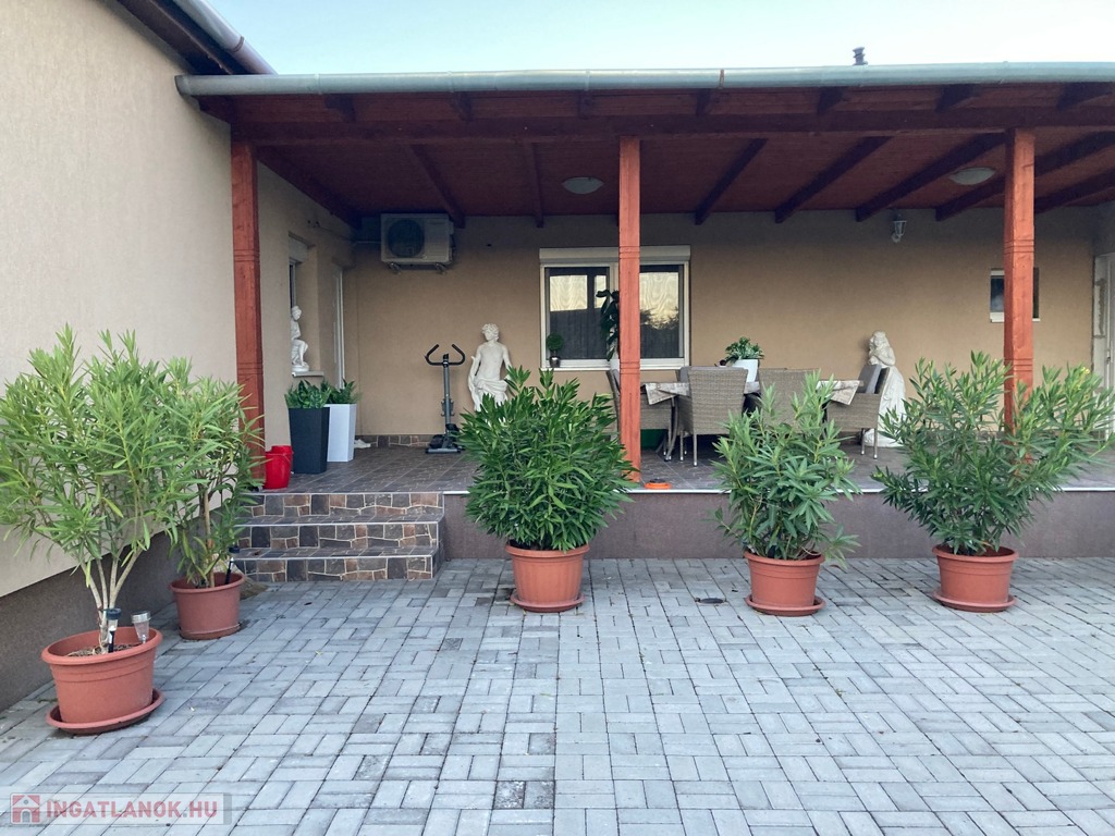 Az ingatlanban található 3 hálószoba, 1 nappali, konyha+ étkezővel, éléskamra, 2 fürdőszoba, egy külön wc, előszoba, első és egy hátsó udvari nagy terasz. A belső teraszról frissen elkészült külön épületrészben található egy nagy és egy kisebb helyiség.