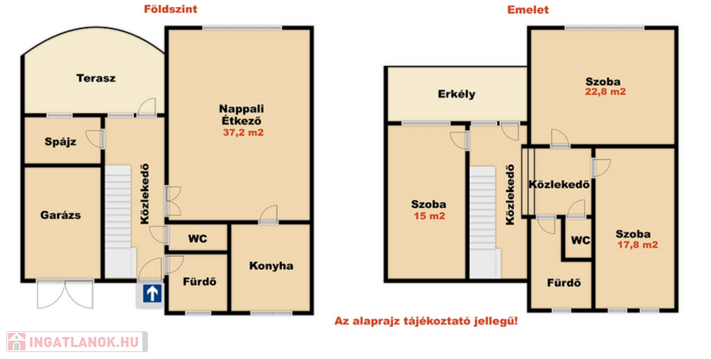 - Szobák: nappali 37m2+ 3 (22,8m2 +15m2 + 17,8m2)